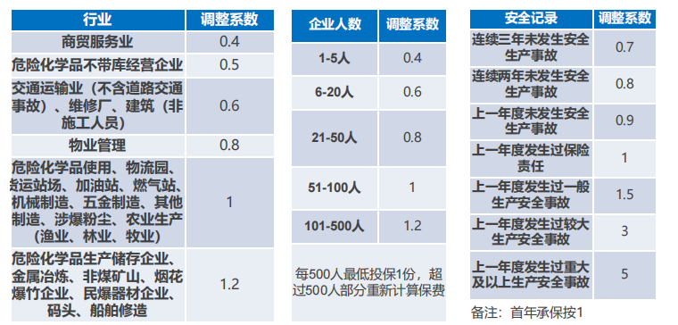 常规行业保费=基础保费*行业系数*人数系数*安全记录系数