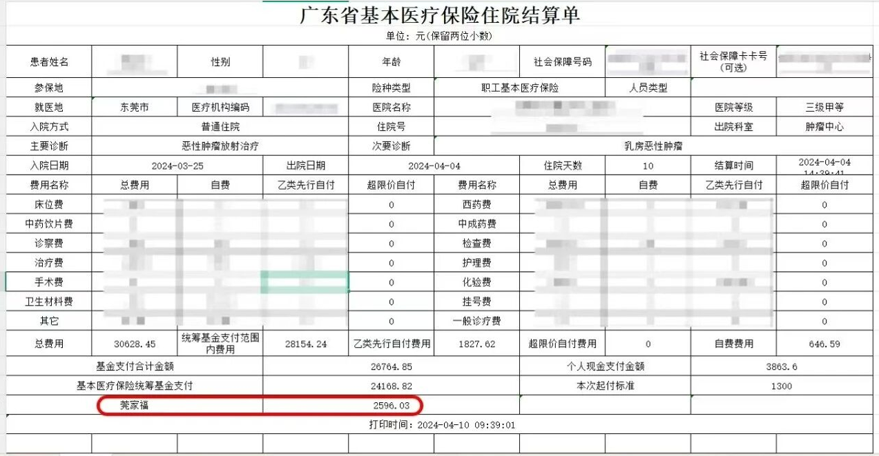 全市定点医疗机构“一站式”结算,无需个人垫付,出院即理赔,出院结算单可查阅“莞家福”报销金额,轻松结算更省心。